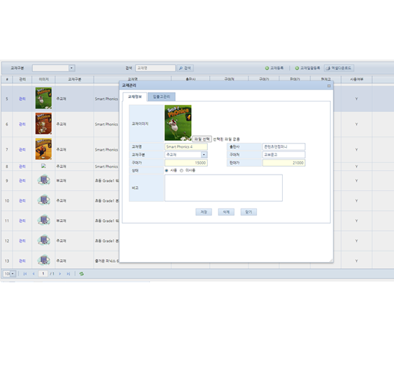 - 교재판매 내역관리